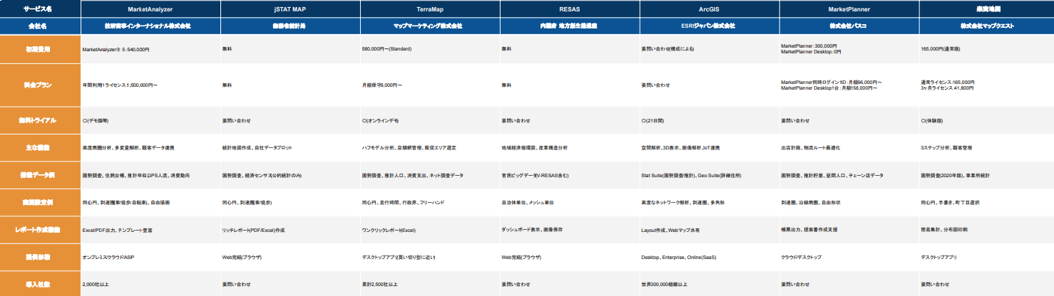 | 主な機能 | 高度商圏分析、多変量解析、顧客データ連携 |