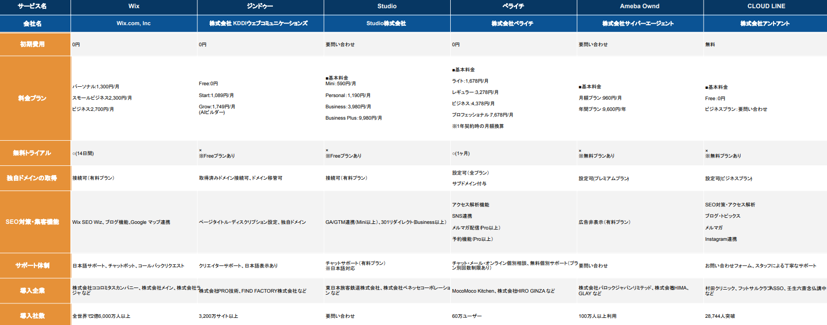 <比較表>ホームページ作成サービスおすすめ15社