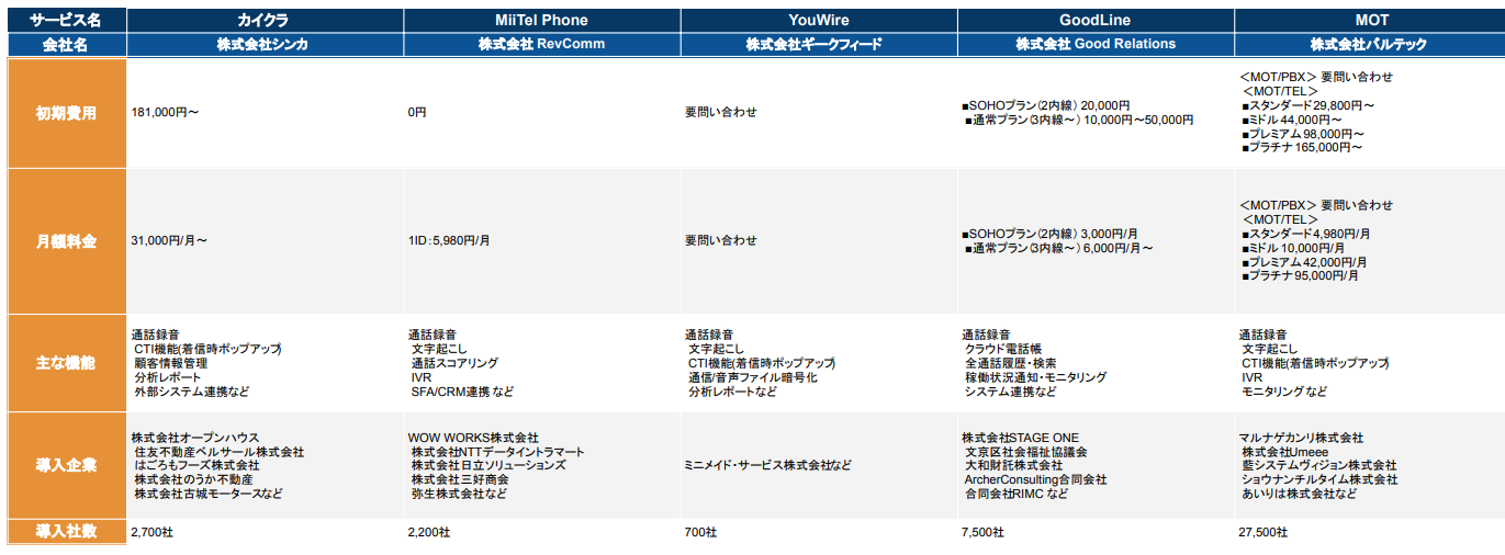 - <比較表>通話録音システムおすすめ15社