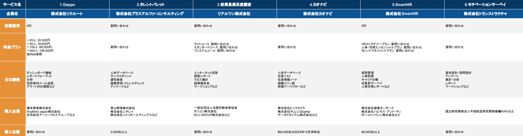 <比較表>従業員満足度調査ツールおすすめ15社