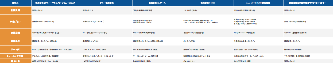 <比較表>管理職研修おすすめ15社